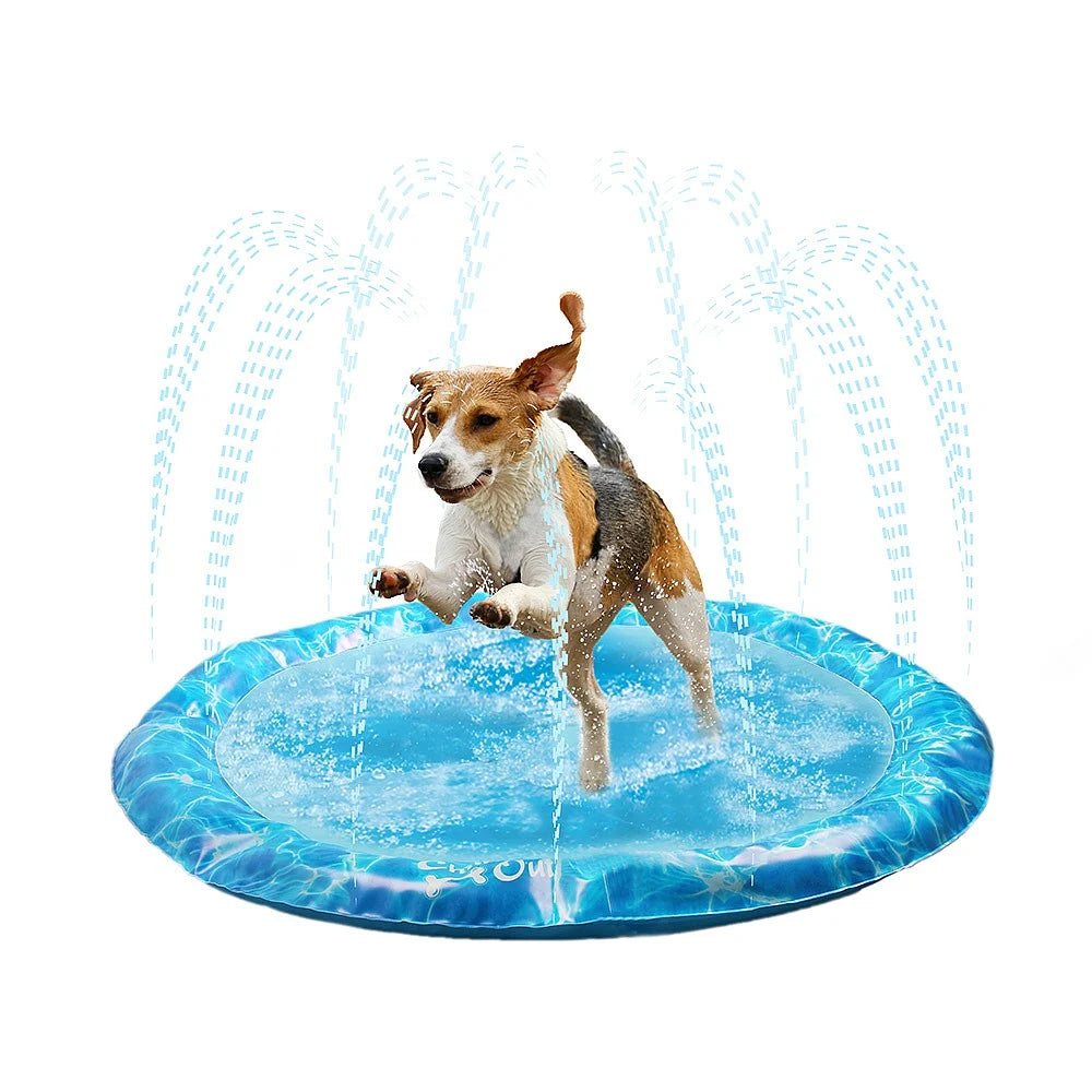 Keep your dog cool, active, and happy during hot summer days with the All For Paws Chill Out Sprinkler Fun Mat. This outdoor dog cooling mat features built-in sprinklers that create a playful water spray when connected to a standard garden hose.