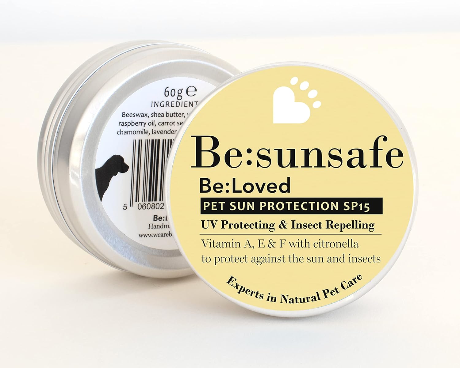 Protect your pet’s sensitive skin from harmful UV rays with Be:Sunsafe Sun Protection Balm. This 100% natural, easy-to-apply balm provides a physical barrier against the sun’s rays.