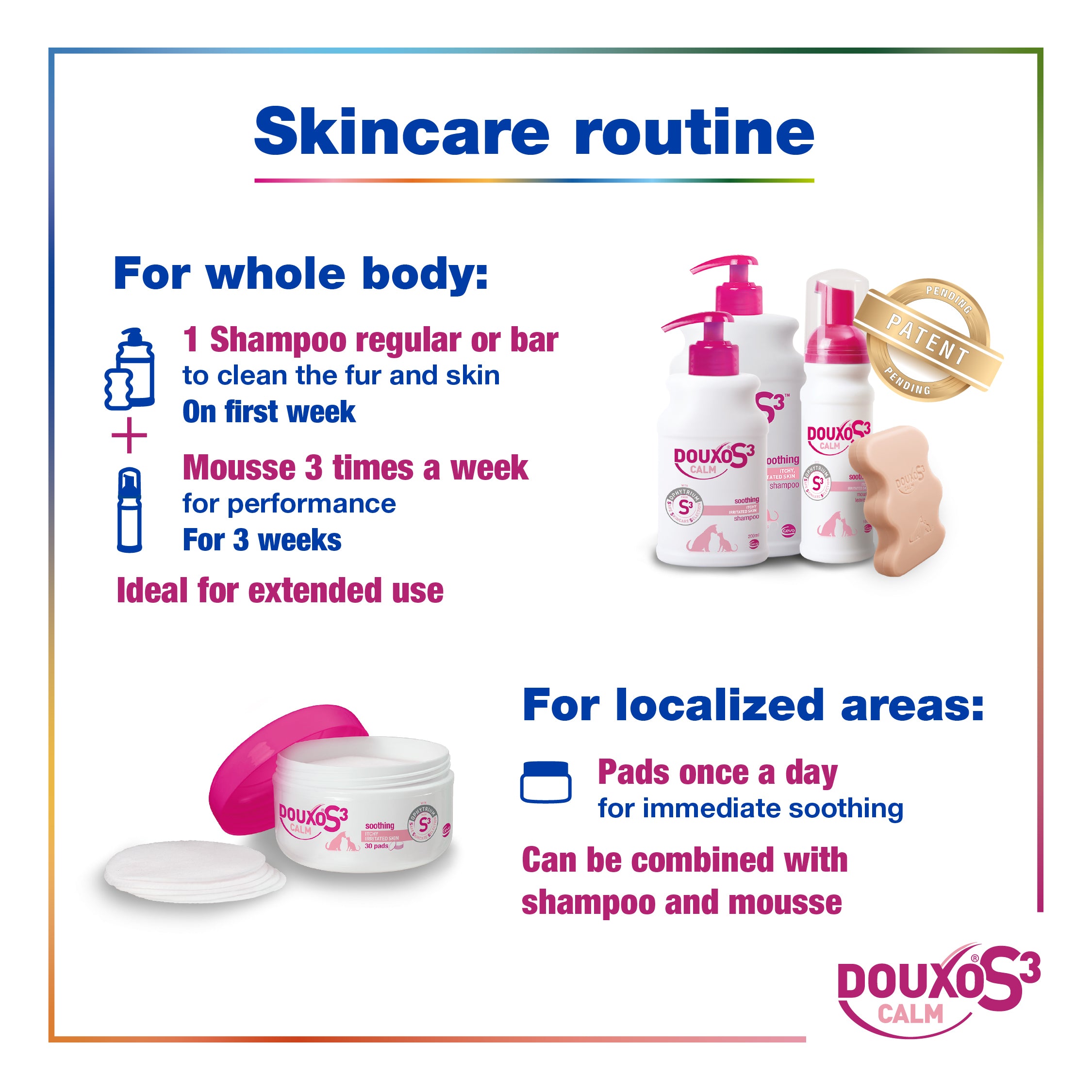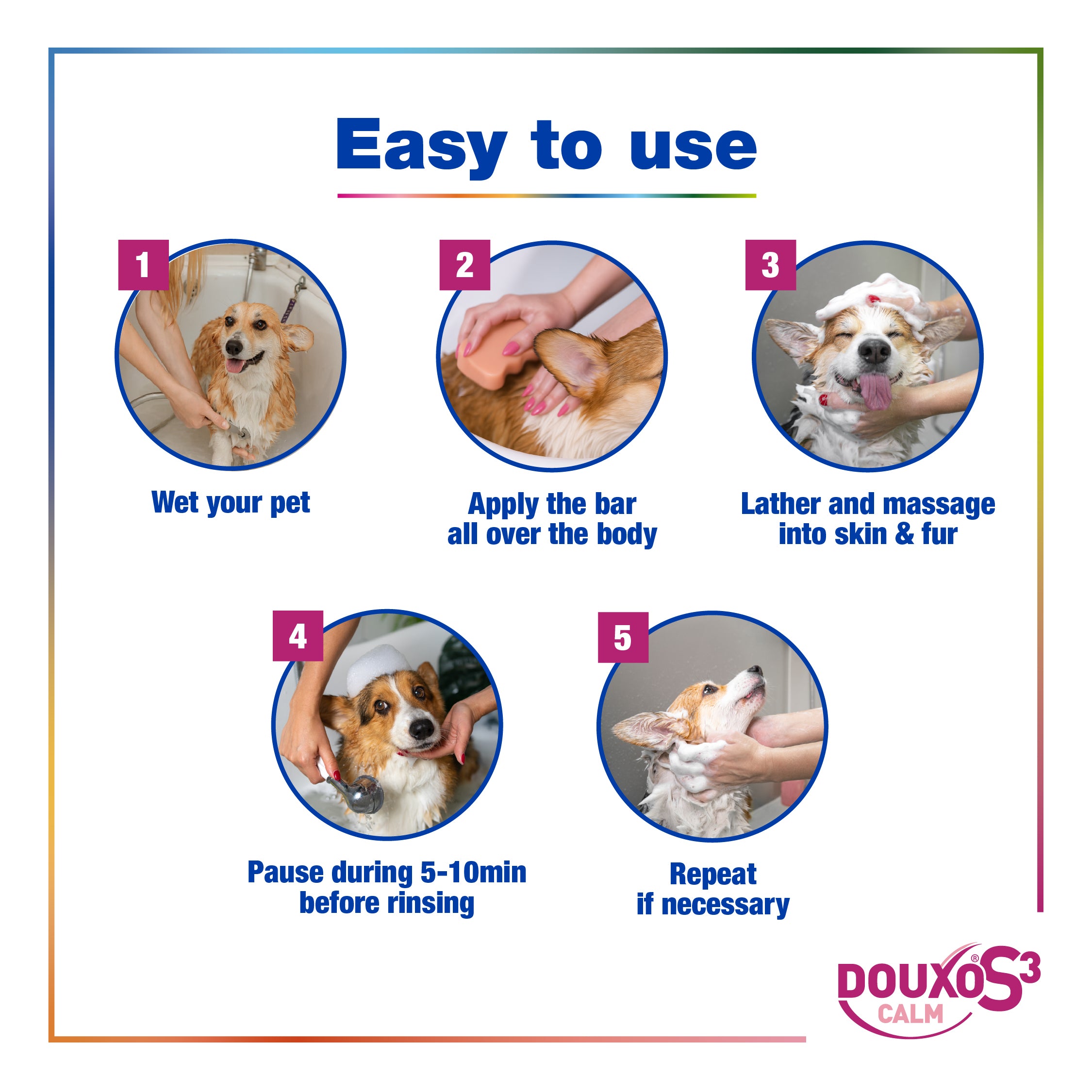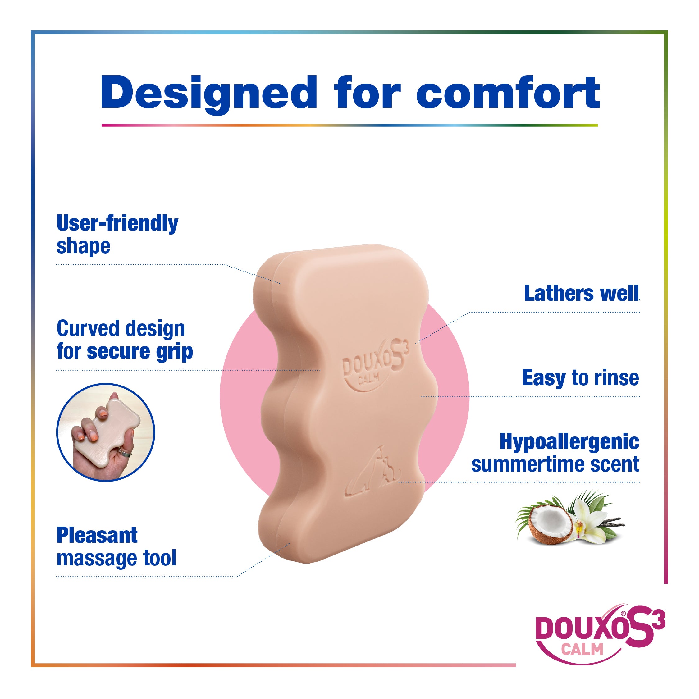 Douxo S3 Calm Shampoo Bar is a gentle, dermatologically tested cleansing solution designed to calm sensitive, itchy skin in dogs and cats. With its soap-free, long-lasting formula and soothing active ingredients, it provides effective skin care while being kind to both pets and the environment.