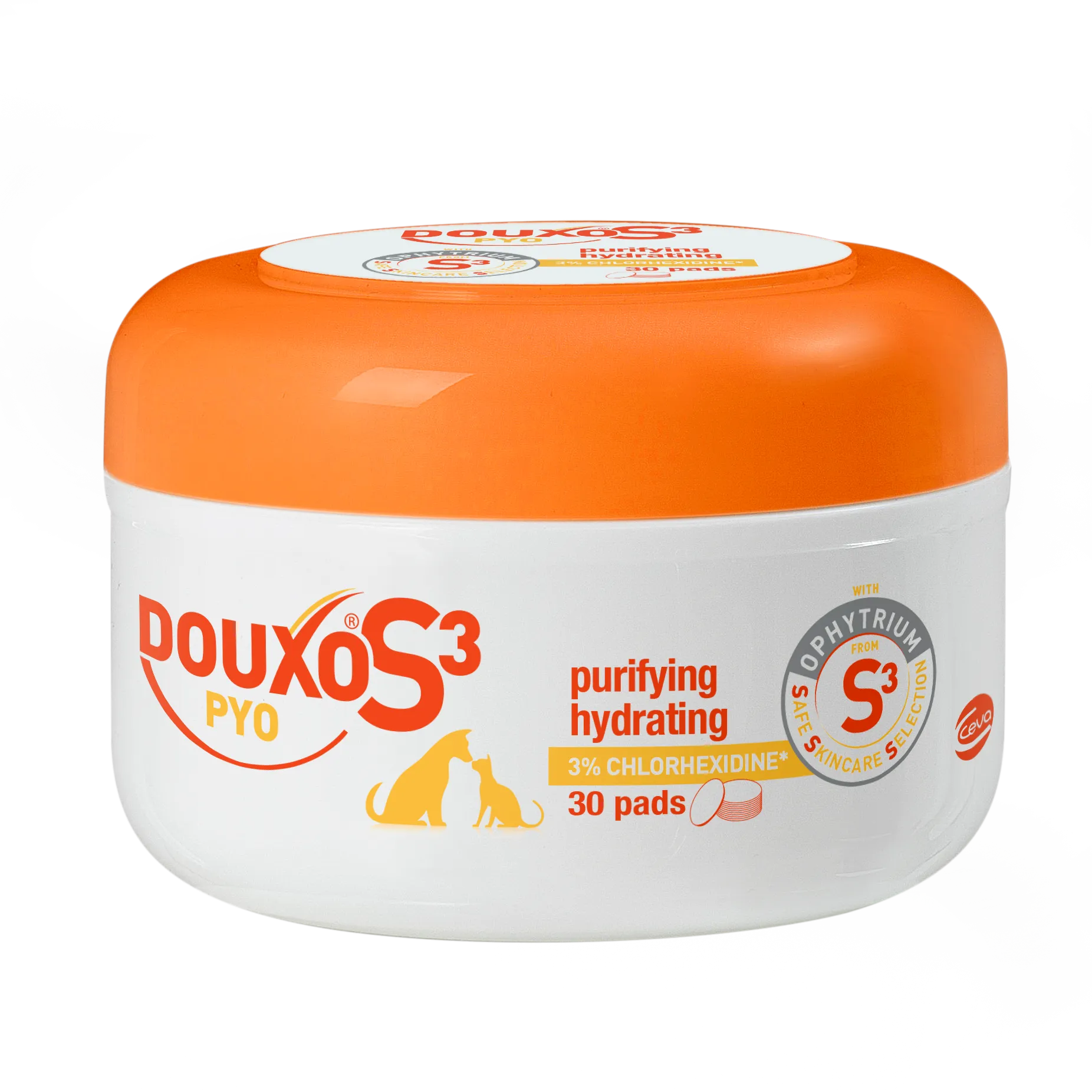 Douxo S3 PYO Pads are veterinary-recommended antiseptic wipes designed to cleanse, soothe, and protect your pet’s skin from bacteria and yeast. Perfect for paws, folds, and hotspots, these powerful yet gentle pads keep your pet’s skin healthy, fresh, and infection-free.