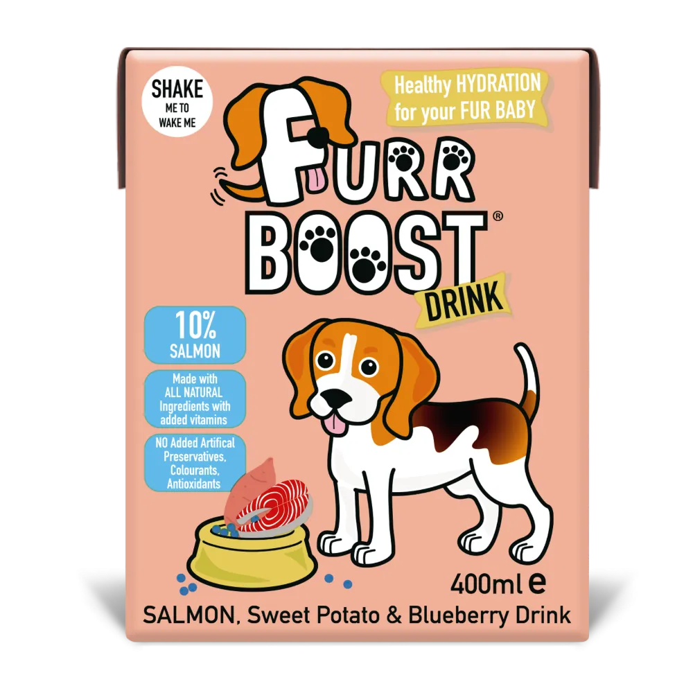 Furr Boost 400ml drinks are natural, vet-approved hydration boosters for dogs. Packed with real meat, fruit, and veggies, they support healthy digestion, skin, coat, and hydration. Perfect for fussy drinkers or post-walk refreshment. Grain-free, dairy-free, and irresistibly tasty!