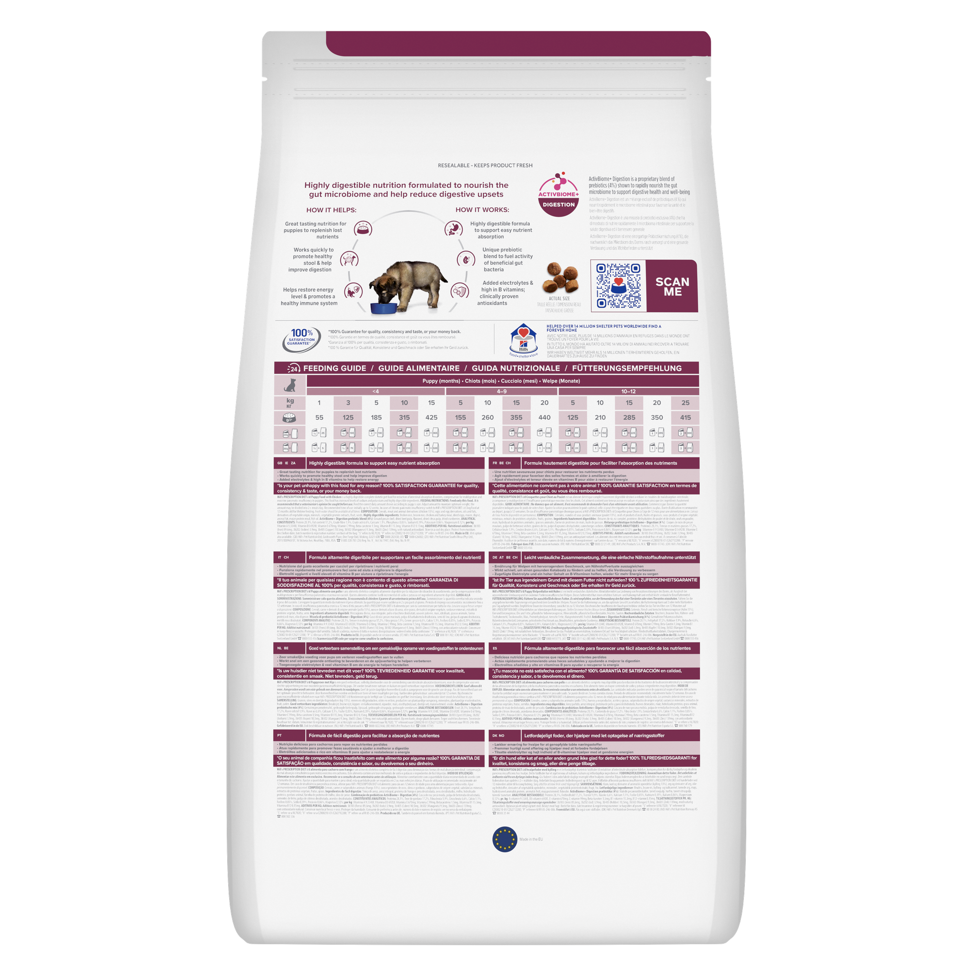 Hill’s Prescription Diet i/d Puppy Chicken Digestive Care Dry Dog Food is a therapeutic, highly digestible diet designed specifically for puppies with sensitive digestive systems. It features ActivBiome+ prebiotic technology to help nourish the gut microbiome, ease digestive upsets and support healthy growth, nutrient absorption, and immune function — ideal for young dogs needing targeted digestive support under veterinary guidance.