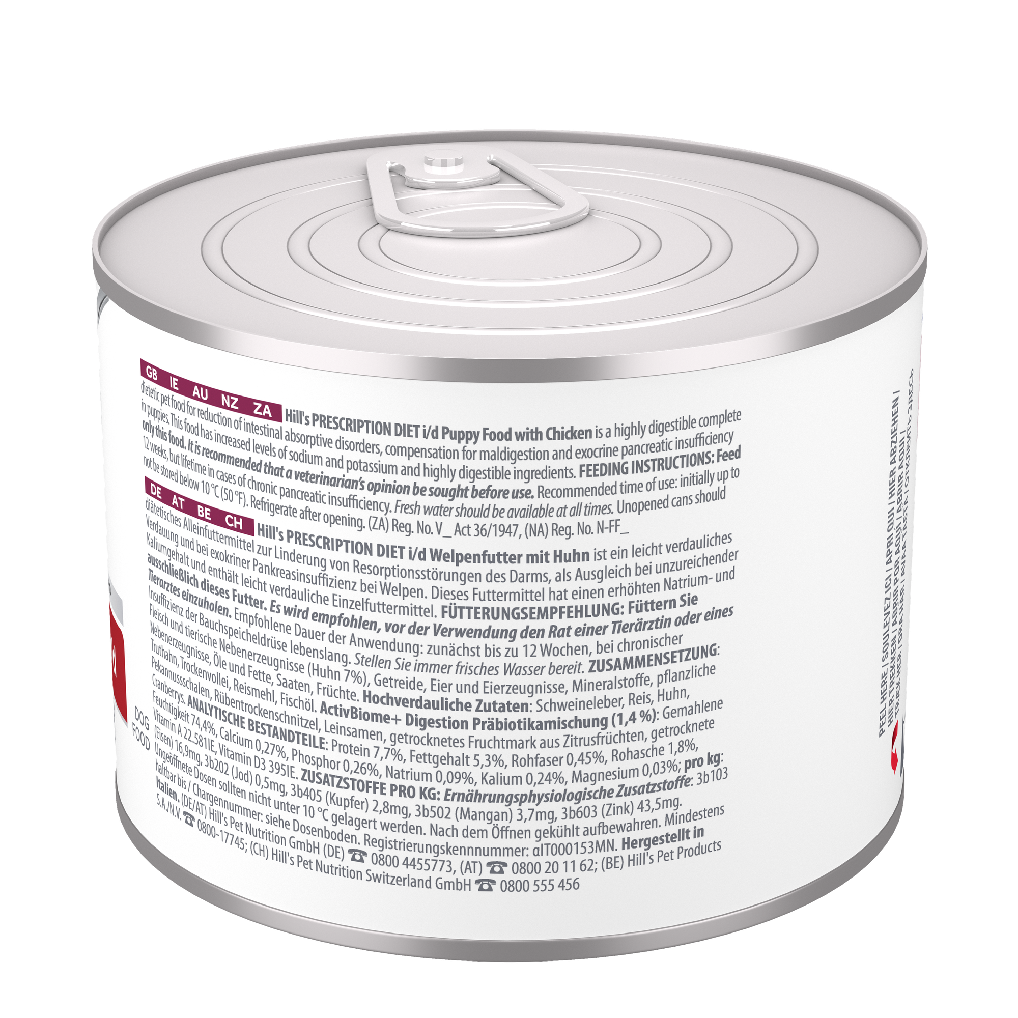 Hill’s Prescription Diet i/d Puppy Chicken Digestive Care Canned Dog Food is a therapeutic wet diet specially formulated for puppies with sensitive digestion and gastrointestinal upsets.