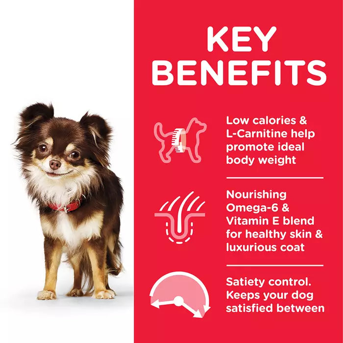Hill's Science Plan Adult Light Small and Mini Chicken Dog Food is tailored nutrition for less active adult small dogs requiring a low calorie food to help maintain a healthy weight & lifestyle. Specially made with our smallest kibble.