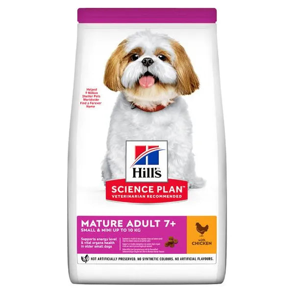 Hill's Science Plan Mature Adult Small and Mini Chicken Dog Food is tailored nutrition for small and miniature dogs aged 7 and above.