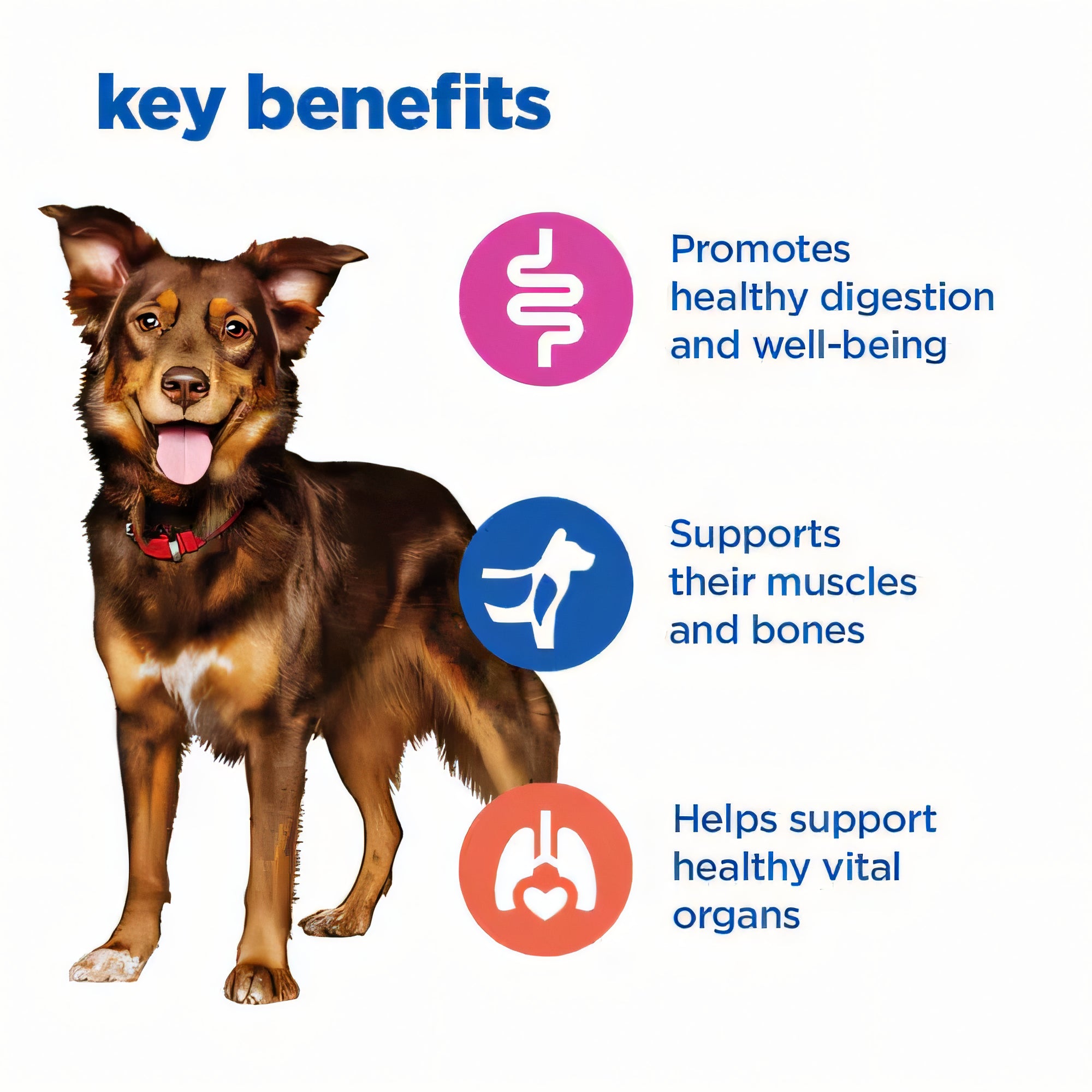 Hill's Vet Essentials Multi-Benefit Adult Medium Dry Dog Food supports adult dogs' overall health with advanced nutrition.