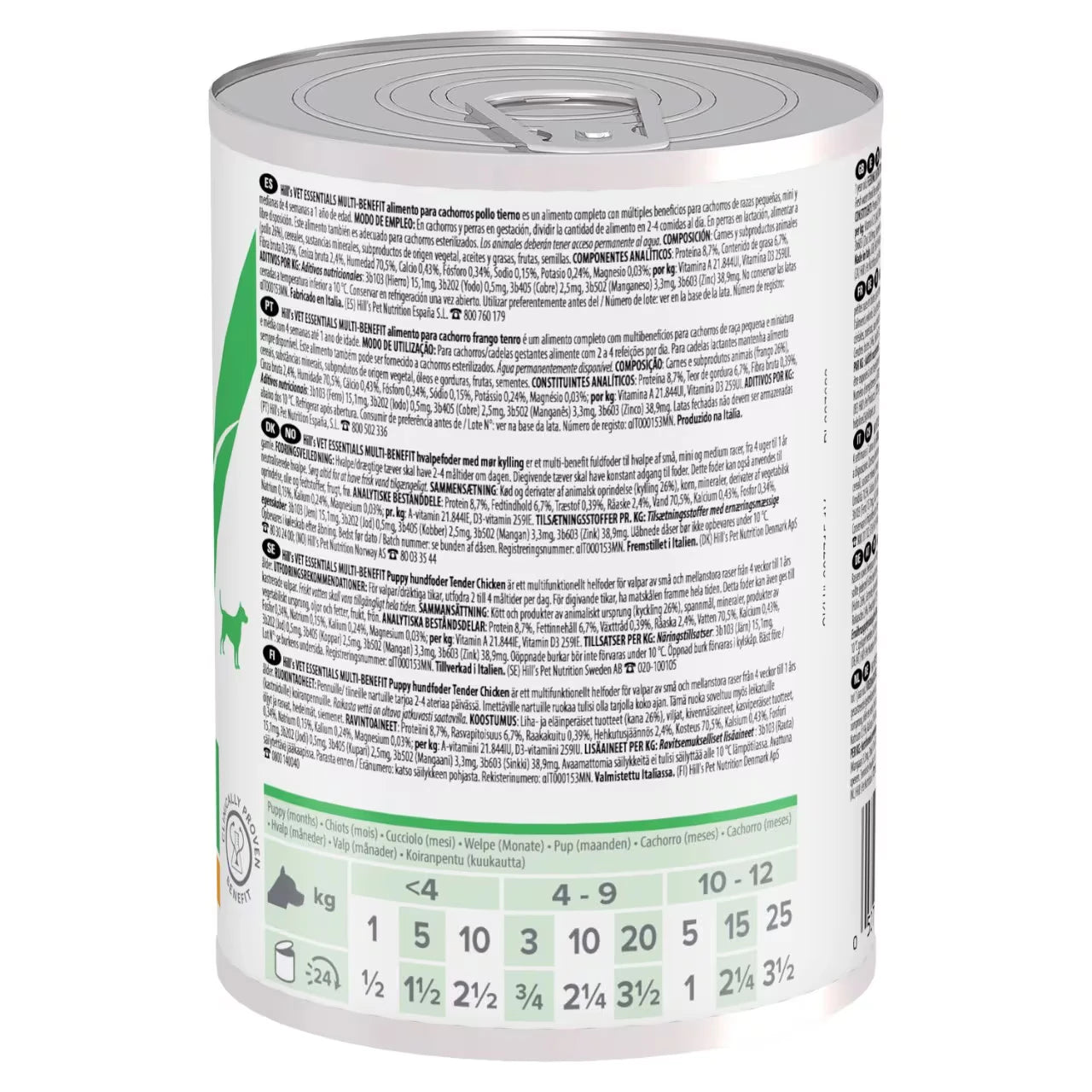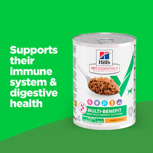Hill's Vet Essentials Multi-Benefit Puppy Wet Food supports healthy growth and overall wellbeing in puppies.