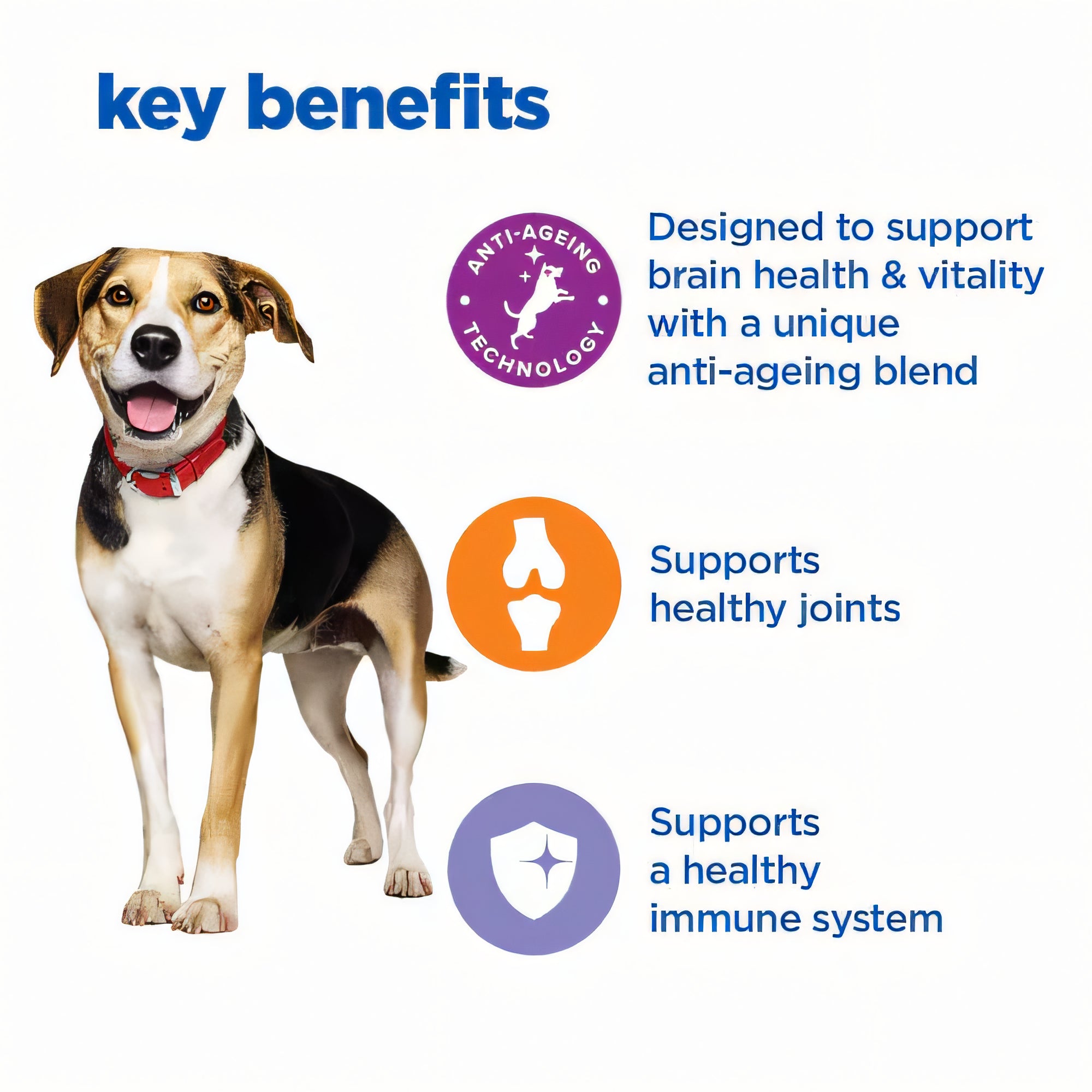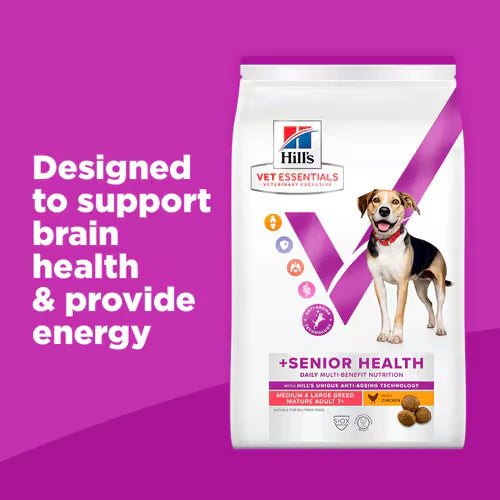 Hill's Vet Essentials Multi-Benefit + Senior Health Mature Adult Medium & Large Dry Dog Food supports key areas of health in ageing dogs.