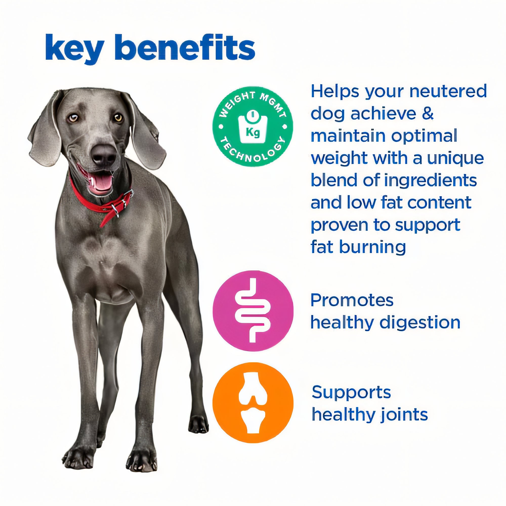 Hill's Vet Essentials Multi-Benefit + Weight Adult 1+ Large Breed Dry Dog Food supports weight management and overall health for large breed adult dogs.