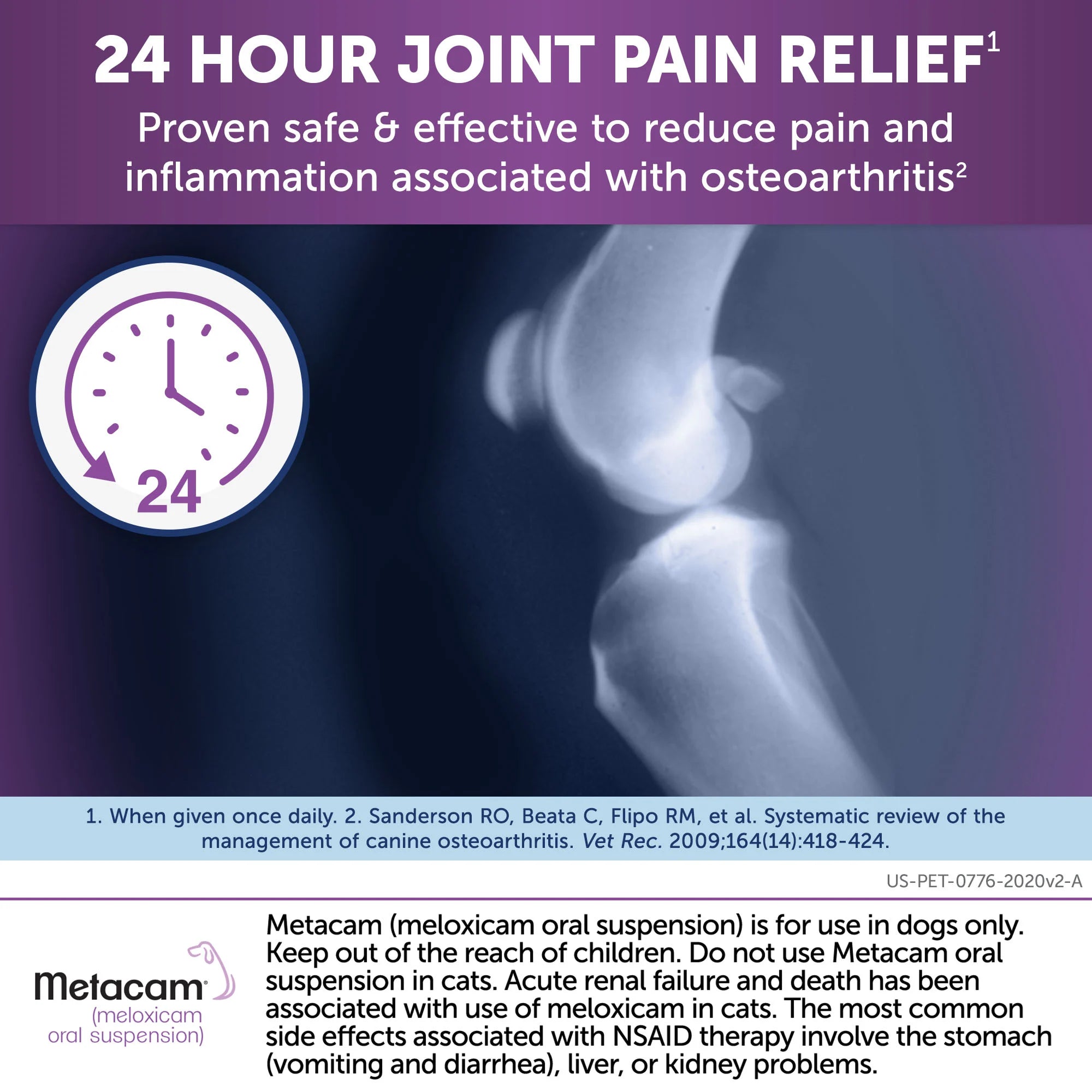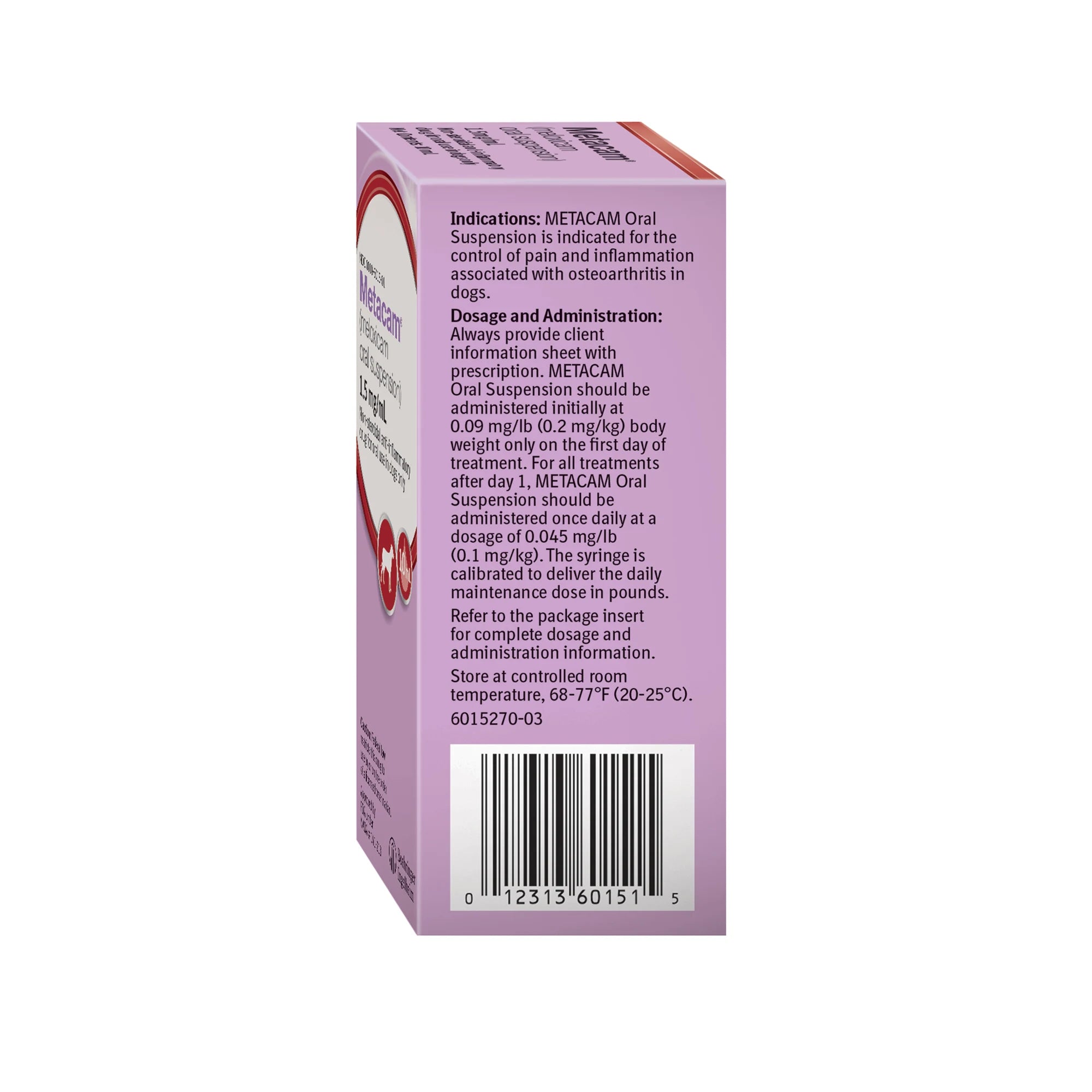Metacam Oral Suspension Dog is an anti-inflammatory and pain relief prescription treatment for dogs. Metacam® relieves short-term (acute) pain after surgery or an injury and can be used as part of the treatment of arthritis.