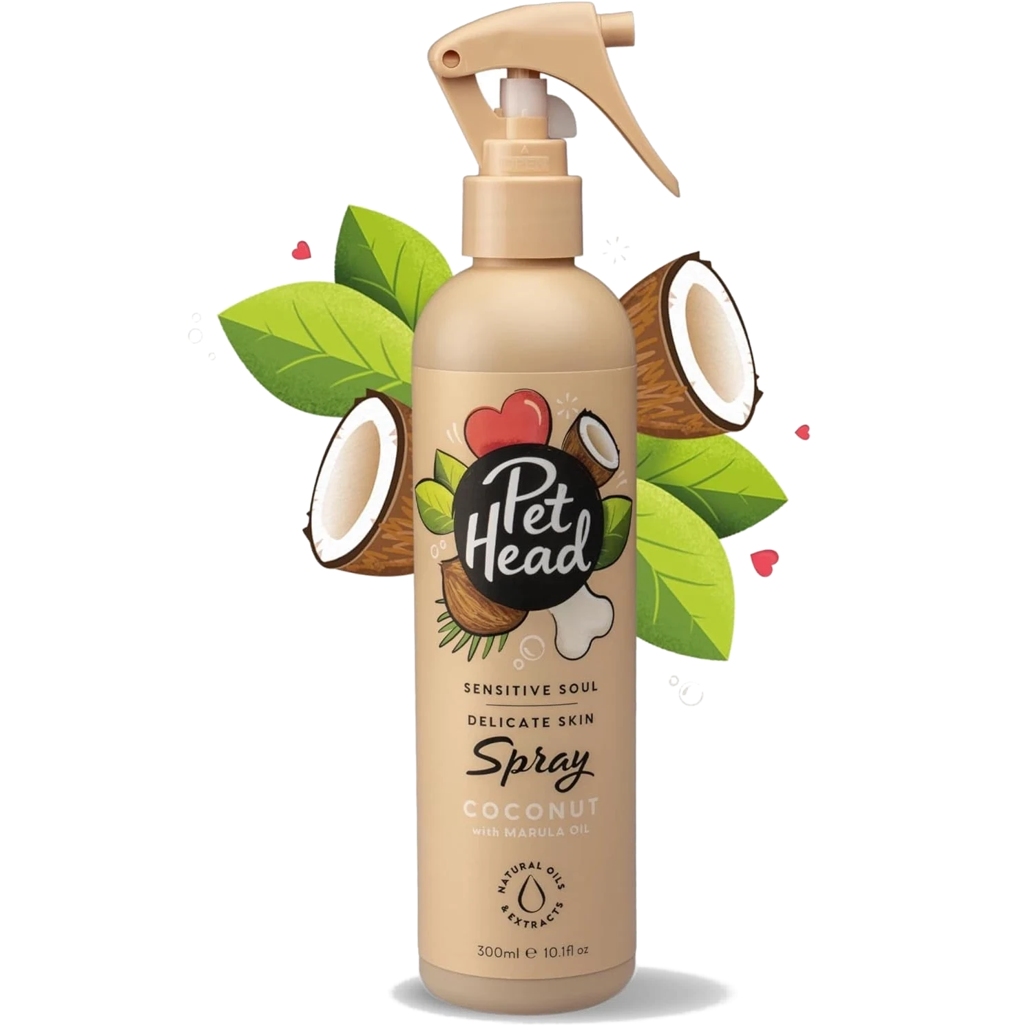Pet Head Sensitive Soul Spray is designed for pets with sensitive skin, using natural ingredients to gently moisturise and soothe while being safe and effective.