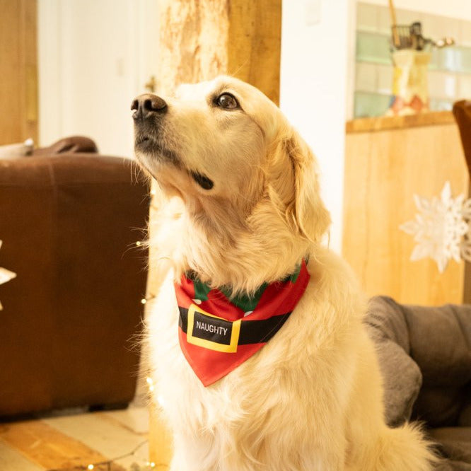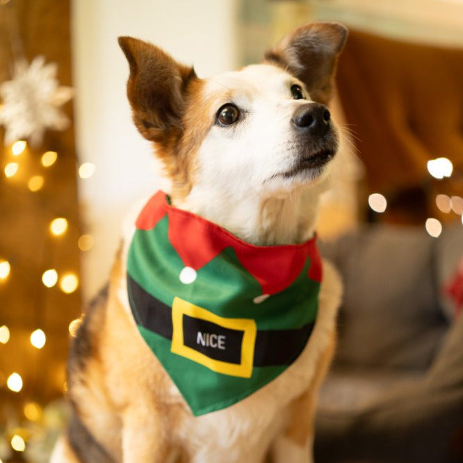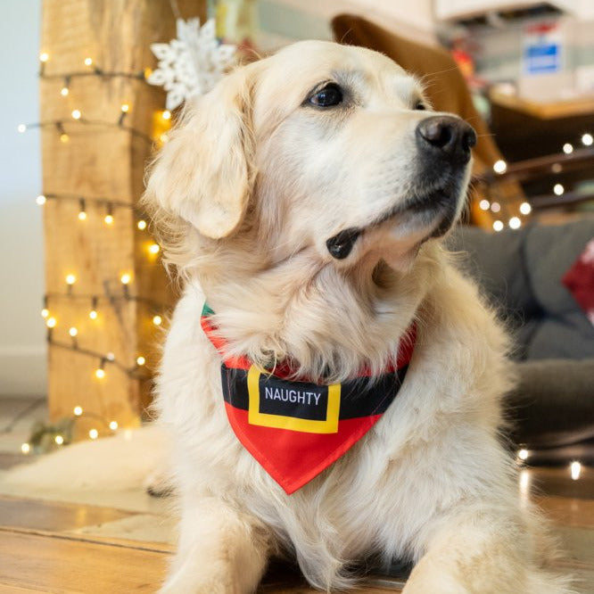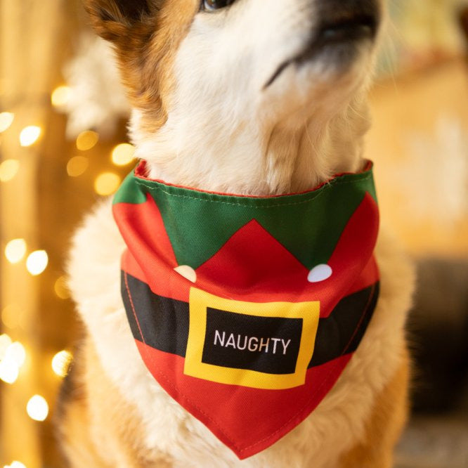 Petface Gifting Naughty or Nice Pet Bandana is a festive, reversible accessory for cats and dogs.