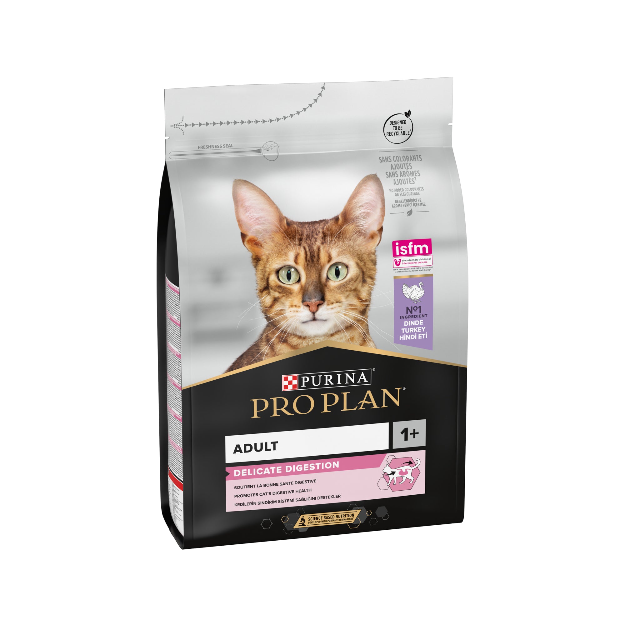 PURINA® PRO PLAN Cat Delicate Turkey is a dry cat food designed to support sensitive digestion and appeal to fussy eaters with quality turkey and balanced nutrition.