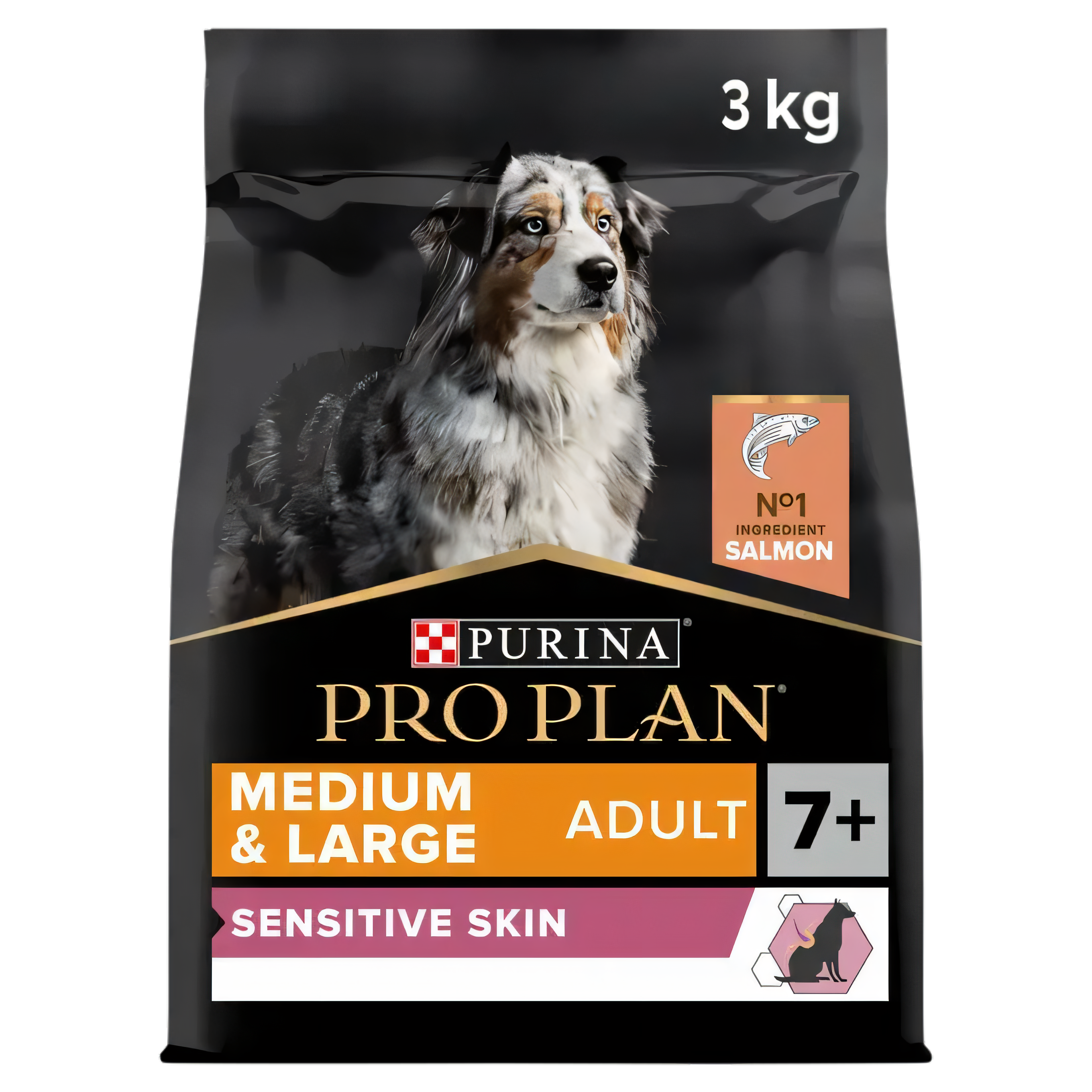 Purina PRO PLAN® Medium and Large Adult 7+ Sensitive Skin Salmon Dry Dog Food supports your dog's health and sensitive skin needs.